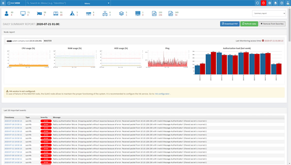 Manage all end devices and monitor the parameters of network devices, even in distributed infrastructures. It makes work easier and faster detection of anomalies in the network. Detailed reports on system events, authorization, DHCP, TACACS, SNMP or VPN are available, allowing you to trace each event that has taken place in the network.